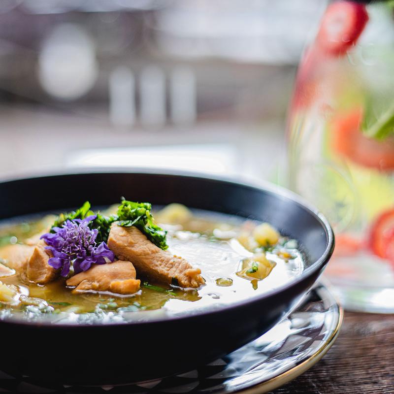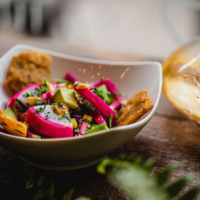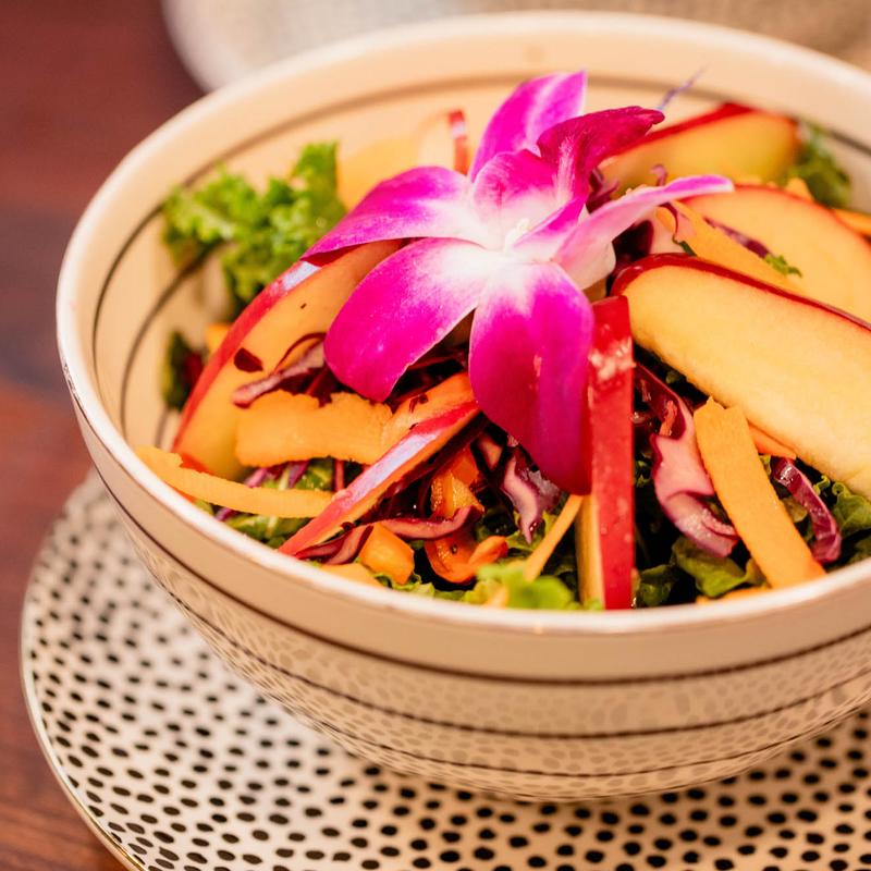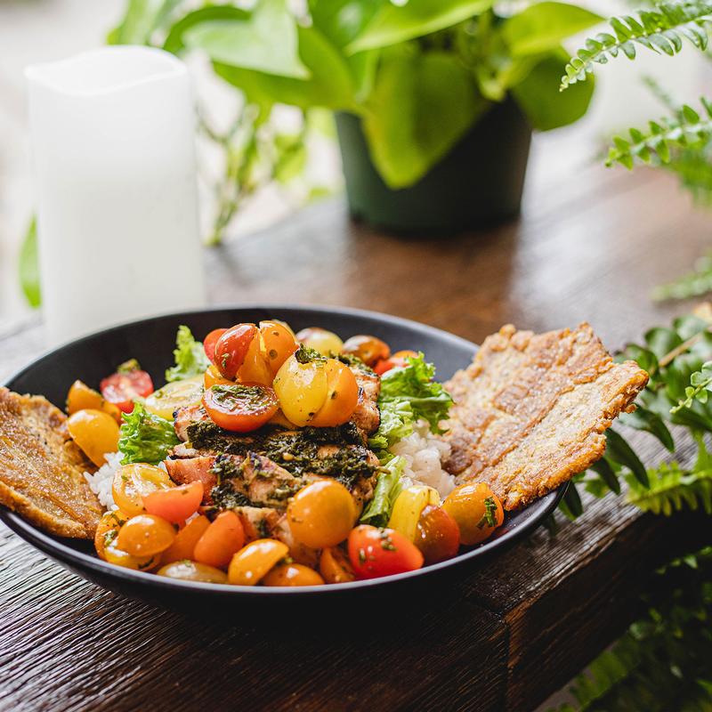 When you walk by from the outside, you can see pretty greenery and eclectic art. But what you don't see from the window is that we have a cozy and inviting downstairs section which has a fully stocked bar and plenty of table seating for lunches and dinners.